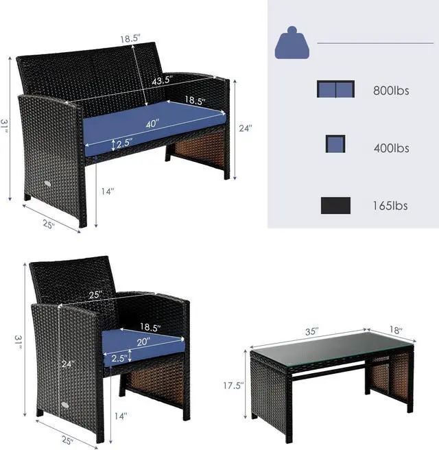 Easy to Change Combination: The 4-piece wicker sofa set provides you one loveseat, two single sofas, and one coffee table, which is diverse for you. For instance, you can share the double sofa and chat with your friends to spend leisure time. Also, the spacious single sofa is ideal for you.