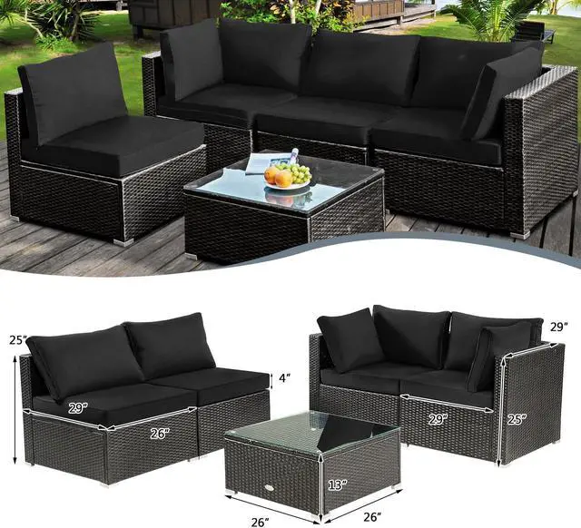 Easy Assembly and Dimensions: With detailed instructions and all necessary hardware, the sofa set can be assembled easily. Corner Chair Size: 29'' x 29'' x 25'' (L x W x H); Armless Chair Size: 29'' x 26'' x 25'' (L x W x H); Coffee table Size: 26'' x 26'' x 13''(L x W x H).