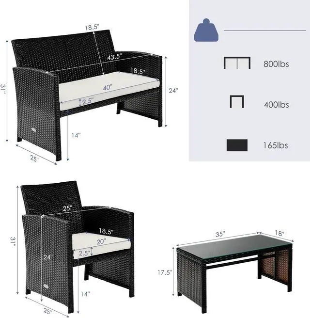 Easy to Change Combination: The 4-piece wicker sofa set provides you one loveseat, two single sofas, and one coffee table, which is diverse for you. For instance, you can share the double sofa and chat with your friends to spend leisure time. Also, the spacious single sofa is ideal for you.