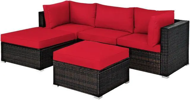 Easy to Assemble and Dimensions: Coming with all the necessary parts and hardware, it is simple to assemble the rattan sofa set. Corner sofa size: 29.5" (L) x 29.5"(W) x 25"(H), armless sofa size: 29.5" (L) x 25.5"(W) x 25"(H), large ottoman size: 29.5" (L) x 29.5"(W) x 12.5"(H), small ottoman size: 25.5" (L) x 25.5"(W) x 12.5"(H).