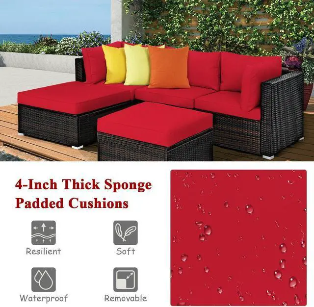 Free Combination: This 5-piece patio furniture comes with 2 corner sofas, 1 armless sofa and 2 ottomans. Each piece of this sofa set can be used separately and easily combined into different configurations according to your preference and needs. The ottoman can be changed to a side table when you remove the cushion.