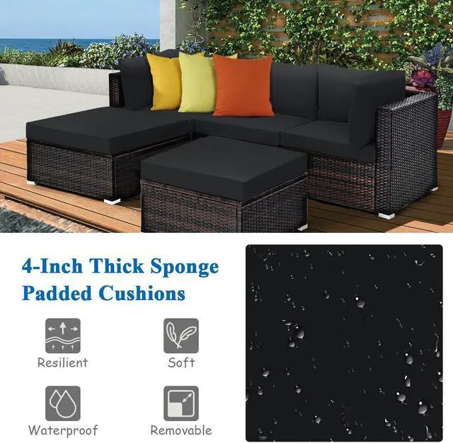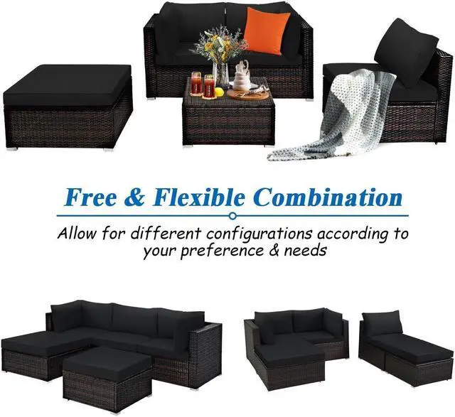 Free Combination: This 5-piece patio furniture comes with 2 corner sofas, 1 armless sofa and 2 ottomans. Each piece of this sofa set can be used separately and easily combined into different configurations according to your preference and needs. The ottoman can be changed to a side table when you remove the cushion.