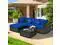 Dimensions of 5 Pcs Rattan Set: Corner sofa size: 29.5'' (L) x 29.5'' (W) x 25.5'' (H), armless sofa size: 29.5'' (L) x 25.5'' (W) x 25.5'' (H), ottoman size: 29.5'' (L) x 29.5'' (W) x 16.5'' (H), coffee table size: 25.5'' (L) x 25.5'' (W) x 13'' (H). Weight capacity of each sofa: 360 lbs, weight capacity of table: 110 lbs.