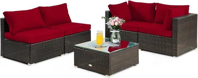 SlickBlue 5 Pieces Cushioned Patio Rattan Furniture Set with Glass Table