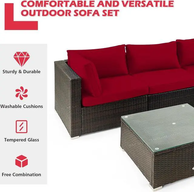Free Combination for Wide Uses: The patio sofa set includes 2 armless sofas, 2 corner sofas, and 1 coffee table, which you can freely combine according to your need and the real situation. This sectional conversation couch set can be used both indoors and outdoors, which is suitable for the living room, balcony, garden, and so on.