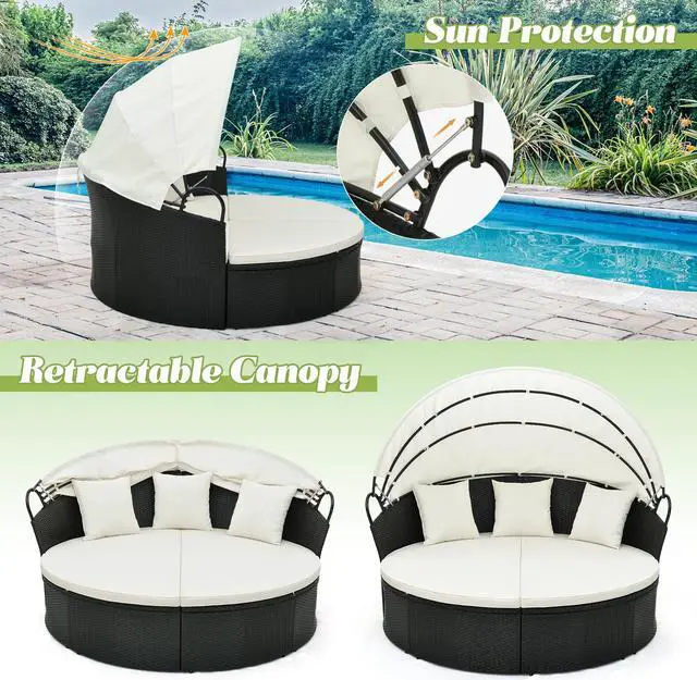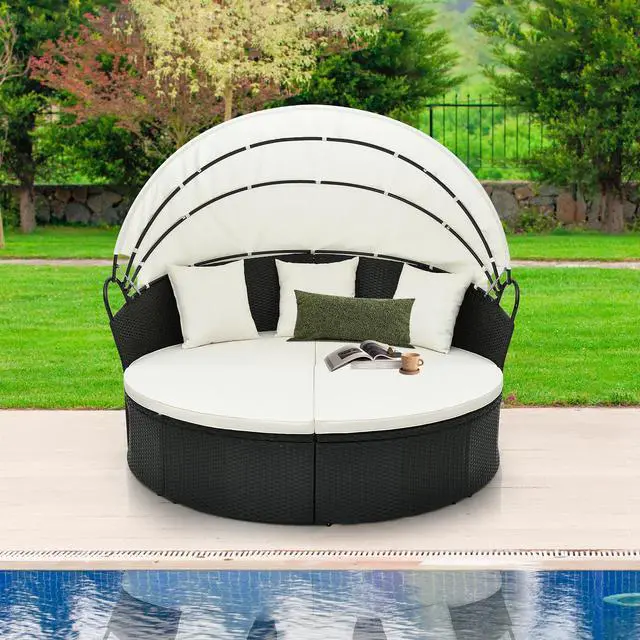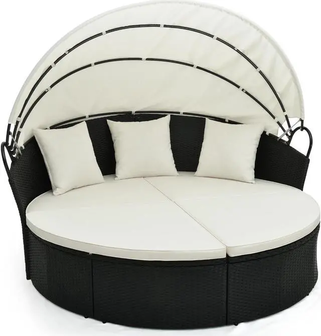 Long-time Outdoor Use: The whole round daybed features premium black PE rattan which is well-woven, anti-fading and built-to-last. Additionally, the heavy-duty metal frame with adjustable footpads ensures high-level stability and strong support.