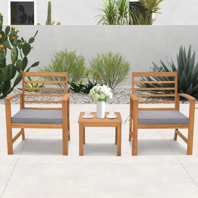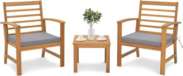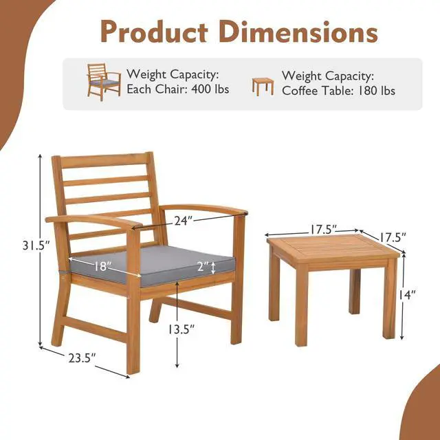 Natural Appearance: This 3-piece patio wood furniture set in original wood color brings natural feelings to the surroundings. Such an elegant appearance will make you enjoy more during relaxing outdoors.