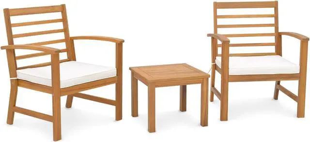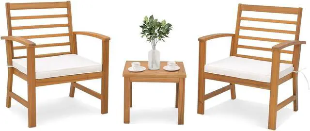 Natural Appearance: This 3-piece patio wood furniture set in original wood color brings natural feelings to the surroundings. Such an elegant appearance will make you enjoy more during relaxing outdoors.