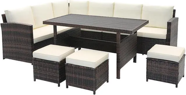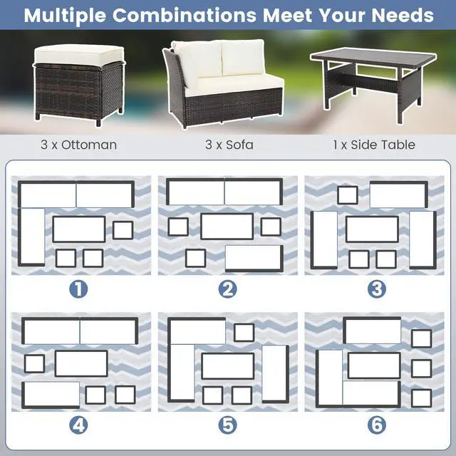Flexible and Free Layout: The 7-Piece rattan sofa set offers various layout options to perfectly tailor your ideal leisure area. Whether you have a large patio or a small balcony, this set can adapt effortlessly to your space, creating a cozy spot that reflects your personal style.