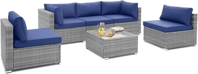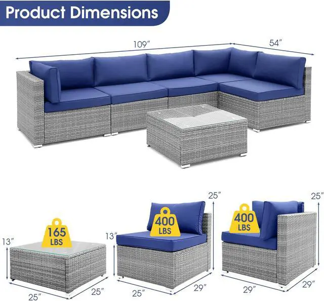 Flexible Combination: This 6-piece patio rattan furniture set can be combined into different shapes to fit areas of different sizes. And 4 fixing clips are provided for sofa connection. Such a convenient design makes the sofa set ideal for different occasions like backyard, poolside, and front porch.