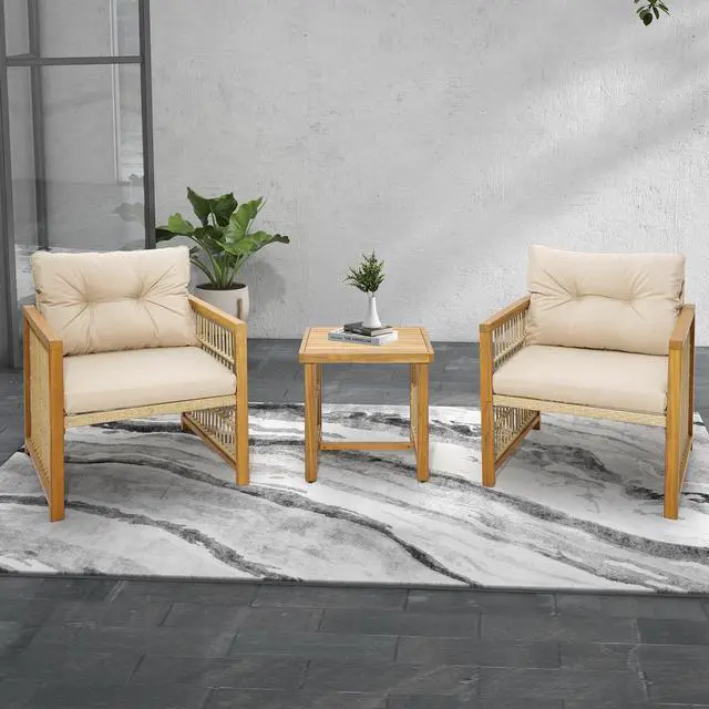 3 Pieces Patio Set: Including 2 armchairs (28" L x 26" W x 31" H) and 1 square coffee table (19" L x 19" W x 19" H), this 3-piece outdoor furniture set turns your porch, patio, balcony, and garden into a leisure space for chatting and drinking, making your outdoor life full of happiness.