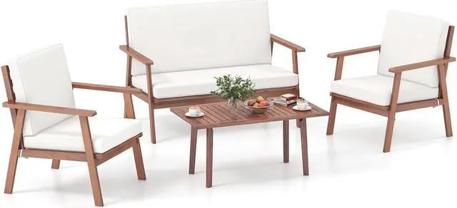 High-Strength Wood Frame: The main frame of the 4 pieces is constructed of selected acacia wood, which will offer strong support and withstand long-time use. The wood frame is not only stable and anti-deformation, but also burr-free and natural.