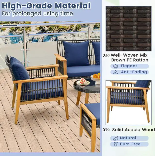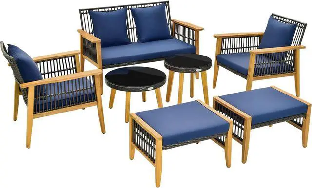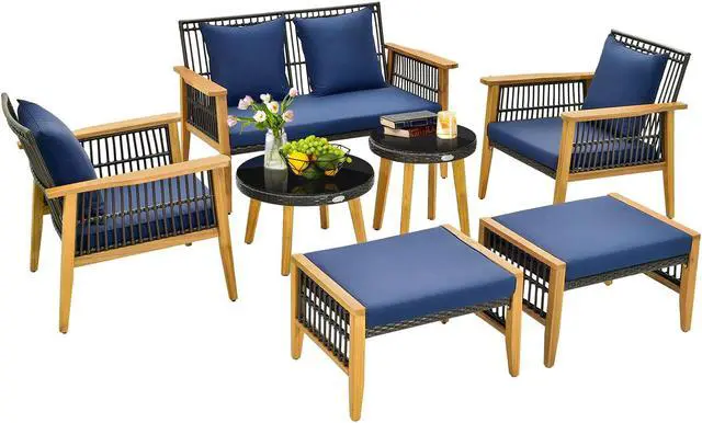 Elegant Rattan Design: This patio set features well-woven mix brown PE rattan, which is anti-fading for prolonged using time. Moreover, the elegant rattan surface makes the 7 pieces look quite eye-catching.