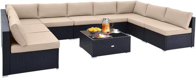 Enjoy Softness and Comfort: With totally 9 armless and corner sofas, the patio set is perfect for family or friend gatherings. Plus, each seat is equipped with seat and back cushions featuring elastic and high-density sponge. And the breathable and anti-fading cushion covers are designed with smooth zippers for easy maintenance.