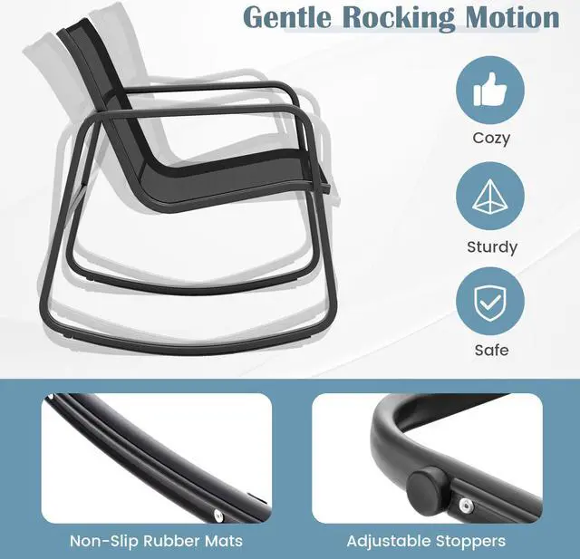 Gentle Rocking Motion: The stable rocking base with non-slip rubber mats and adjustable stoppers makes each chair rock slightly and keep balanced. And the ergonomic seat with a curved design will offer you a cozy relaxing experience.