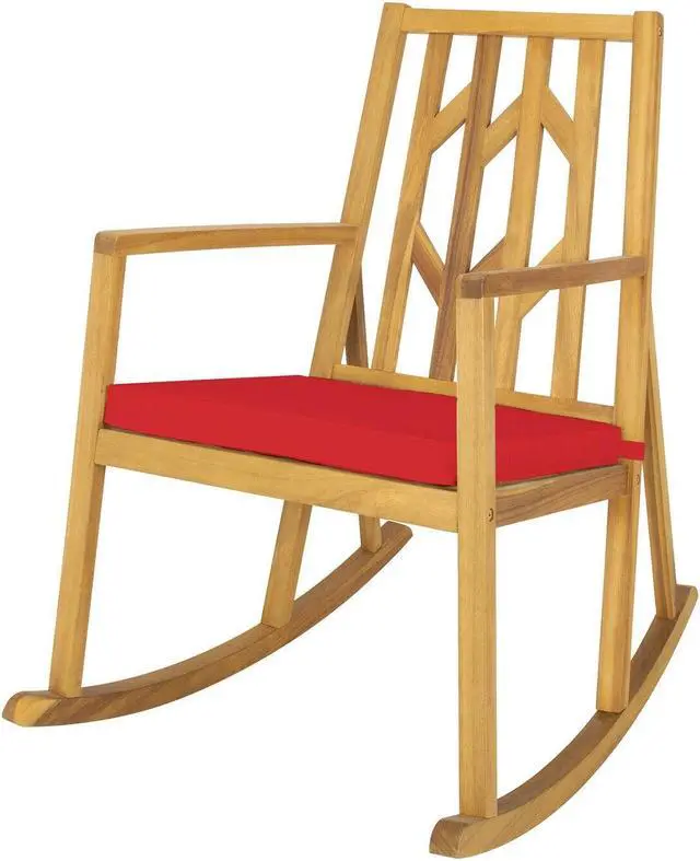 Sturdy Acacia Wood Structure: Crafted from selected acacia wood, the patio rocker features high resistance to abrasion and deformation, ensuring long-lasting using time. And the bottom rocking base with a triangular structure makes the chair rock in a smooth and balanced way, and able to withstand the weight of 350 lbs.