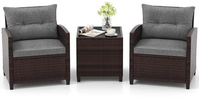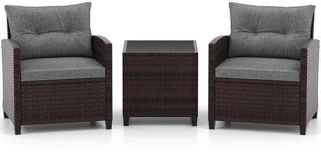 Durable Steel Frame & All-Weather Rattan: Crafted with a powder-coated steel frame and premium hand-woven PE rattan, this 3-piece patio set offers exceptional durability, rust resistance, and weather resilience. Ideal for long-term outdoor use without fading or cracking.