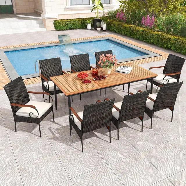 9-Piece Patio Dining Set: Designed for entertaining, this spacious set includes 1 table and 8 chairsperfect for hosting family meals, outdoor parties, or weekend get-togethers. Enjoy outdoor dining