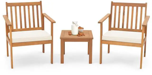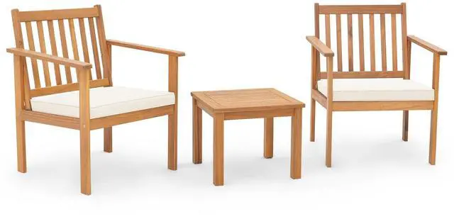 Stylish Outdoor Addition: With its warm natural wood tone and clean lines, this 3-piece patio chair set adds organic elegance to any settingideal for balconies, decks, gardens, or poolside lounging.