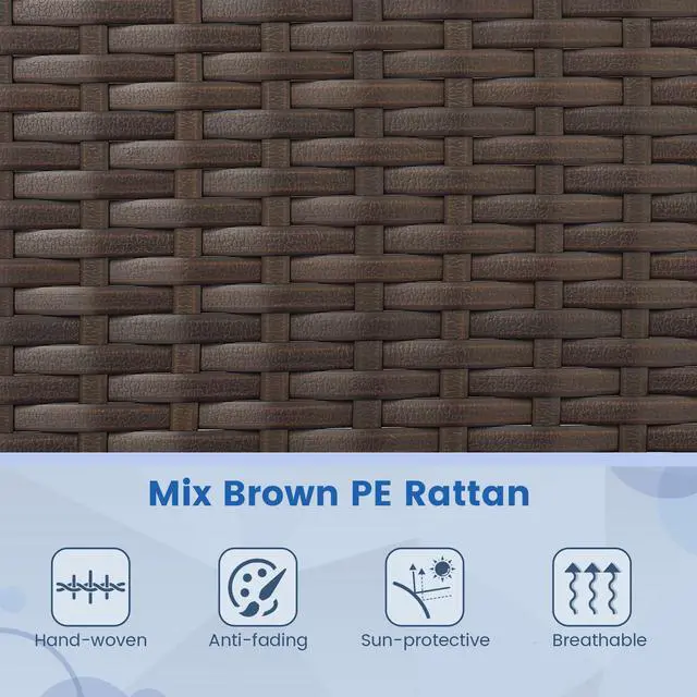 Elegant Hand-Woven Rattan: Crafted with mix gray PE rattan, this set combines stylish texture with all-weather durability. The sunproof and fade-resistant weave offers a breathable surface and adds timeless charm to any outdoor space.