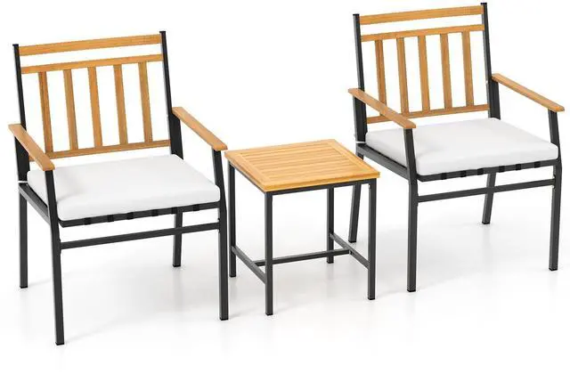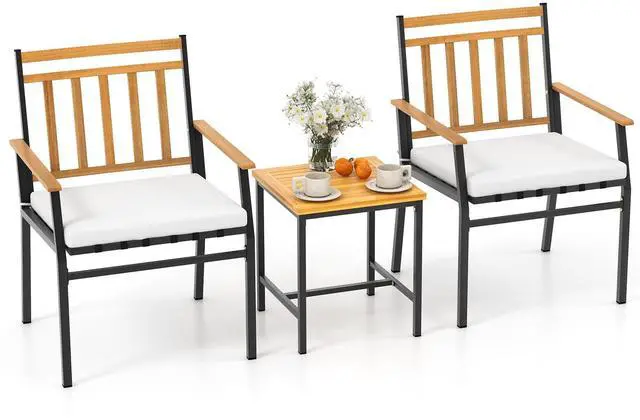 Premium Acacia Wood Accents: The armrests, backrests, and tabletop are crafted from naturally rich, crack-resistant acacia wood that resists splintering. Its smooth finish adds rustic charm and timeless beauty to any outdoor setting.