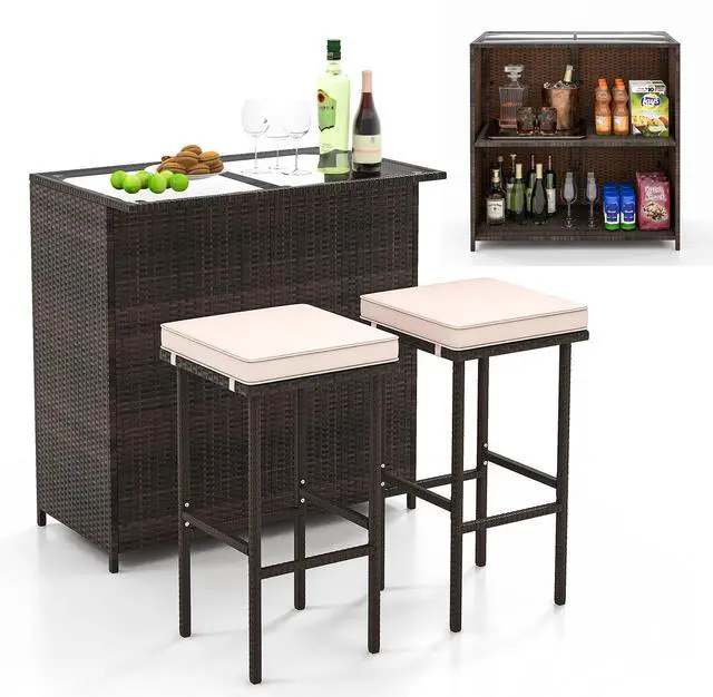 - Rattan bar set of 3 for versatile indoor and outdoor use