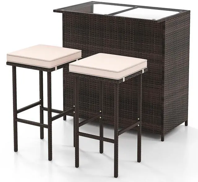 Premium All-Weather Construction: Built to withstand the elements, this 3-piece outdoor bar set combines hand-woven PE rattan with a heavy-duty metal frame. Fade-resistant and durable, it ensures lasting beauty and performance in any patio, deck, or balcony setup.