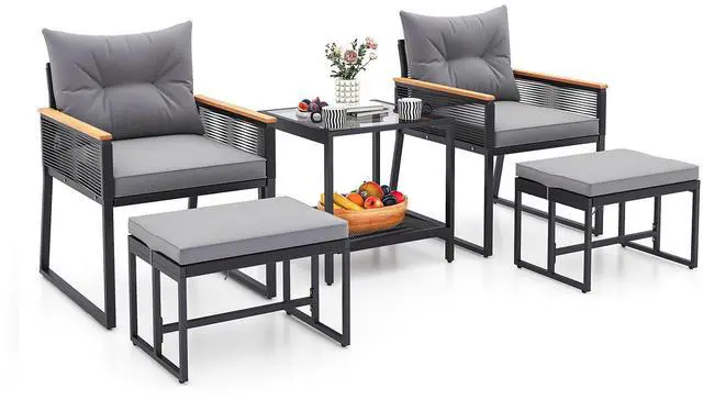 Sink-In Comfort: The armchairs and ottomans include ultra-soft cushions filled with plush, high-resilience sponge. Zippered covers allow for quick removal and cleaning, while the ottoman cushions are secured with fixing ties to stay in place during use.