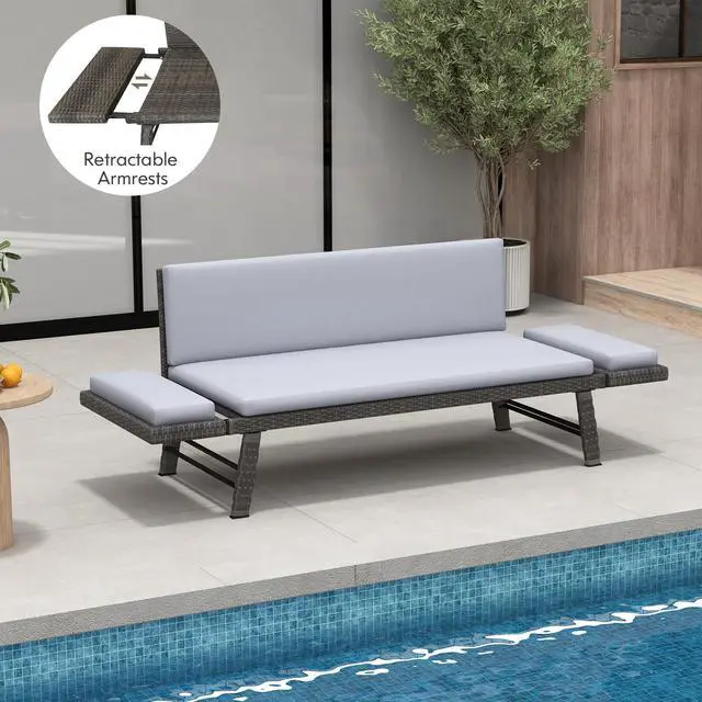 2-in-1 Convertible Design: Designed with adjustable armrests, this versatile piece easily transforms from a cozy loveseat into a spacious outdoor daybedperfect for relaxing, lounging, or entertaining guests.