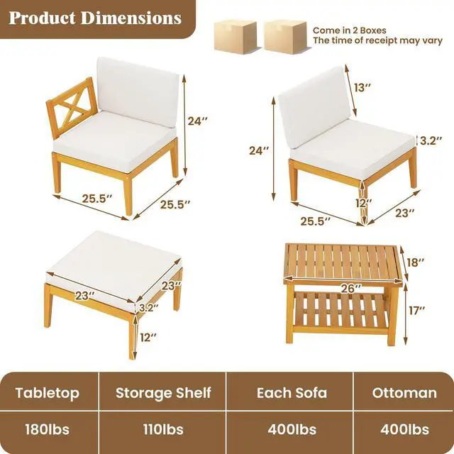 Crafted from Solid Acacia Wood: Built with naturally strong acacia wood, this set offers reliable support and a warm, natural finish that complements any outdoor space.