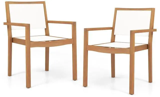 Solid Acacia Wood Construction: Built with premium acacia wood, each chair offers excellent durability and a natural look. With a weight capacity of 400 lbs, these chairs also include adjustable foot pads for enhanced stability on uneven ground.