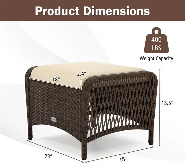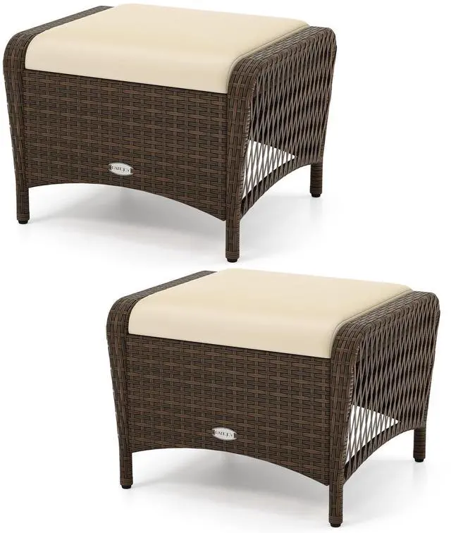 Set of 2 Versatile Outdoor Ottomans: Includes two matching ottomans perfect for use as footrests, side tables, or extra seatingideal for patios, balconies, decks, or garden spaces.