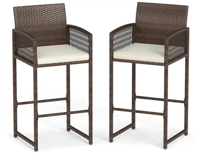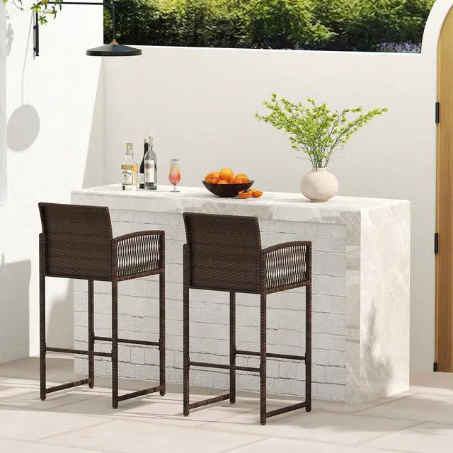 Set of 2 Patio Bar Height Chairs: Includes two bar stools designed for use with outdoor high-top tablesideal for patios, balconies, backyard bars, or poolside counters.