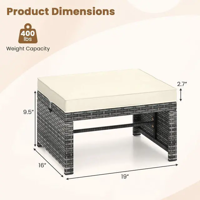 Removable Cushions for Added Comfort: Each ottoman features a thick, padded cushion with a zippered cover for easy removal and cleaningideal for year-round use.