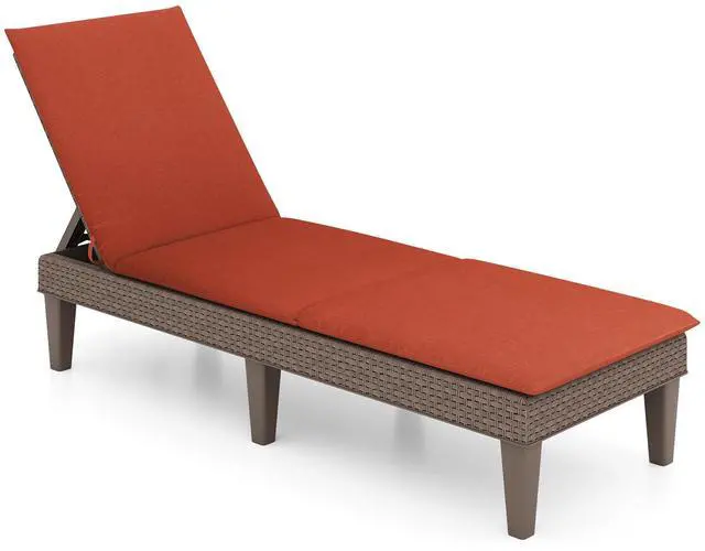 Specification: Color Brown Color of Cushion Navy Blue/ Dark Grey/Orange/Red/Beige Material Short Fiber Fabric Foam PP Overall Dimensions 59"x 22.5" x 34.5" Overall Dimensions of Cushion 72"� x 23"� x 1.8" � (L x W x Thickness) Backrest Dimensions 26" x 20" Seat Cushion Length 45.5" � Bed Height 11" Dimensions of Max. Recline Angle 73" x 22.5" x 19.5" Weight Capacity 330 lbs Net Weight 20.5 lbs Box qty 2 Package Includes 1 x Patio Chaise Lounge Chair 1 x Cushion 1 x User