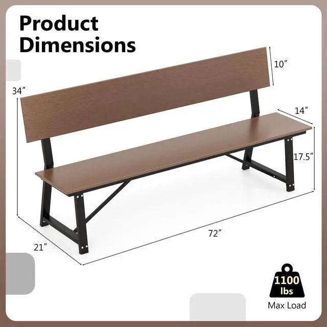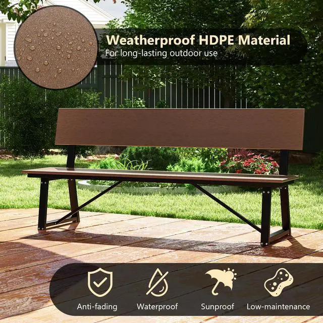 Instruction Description: Measures 72 inches accommodating 4 adults comfortablyHDPE seat and back for long-lasting outdoor useCozy backrest makes you more relaxedHeavy-duty metal frame supports up to 1100 lbsErgonomic design ensures comfortable seatingSimple cleaning requires only a damp clothIdeal for gardens porches and outdoor spaces