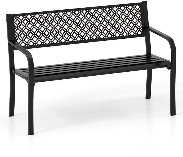 Description: Ensure stable and reliable support with sturdy metal constructionCome with a strong loading capacity of up to 790 poundsThe anti-slip foot pads ensure additional stabilityAdd a modern and sophisticated touch with a geometric lattice patternRoom for 2-3 people perfect for hosting small gatheringsInclined backrest curved armrests and contoured seat for optimal comfortEnsure breathability thanks to its hollowed backrest and slatted seatSuitable for porch patio garden and backyardPlease avoid rain exposure for prolonged service life4 pieces for easy assembly