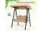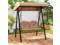 Instruction Description: Adjustable canopy offers protection against sunlightWide sitting area is perfect for 2 people to relax togetherSoft and elastic cushions offer much comfortTufted design of back cushions for more eleganceSolid A-shaped metal frame for high stabilityMesh seat fabric is breathable and cozyNon-slip footpads make the porch swing stablerStrong spring hooks firmly hold the swing chairIdeal for poolside backyard balcony and so onAssembly is requiredInstallation guide