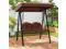 Instruction Description: Adjustable canopy offers protection against sunlightWide sitting area is perfect for 2 people to relax togetherSoft and elastic cushions offer much comfortTufted design of back cushions for more eleganceSolid A-shaped metal frame for high stabilityMesh seat fabric is breathable and cozyNon-slip footpads make the porch swing stablerStrong spring hooks firmly hold the swing chairIdeal for poolside backyard balcony and so onAssembly is requiredInstallation guide