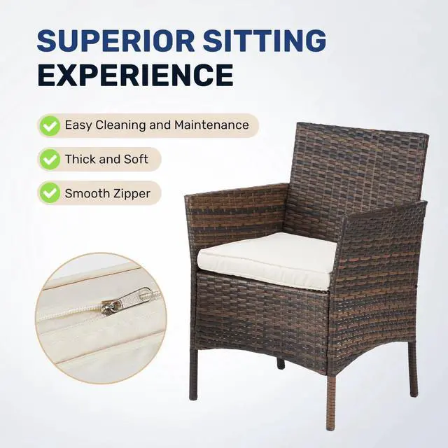 Versatile design: The table & wicker chairs can be flexibly combined to suit various indoor & outdoor spaces. With a classic color scheme, the ratten furniture decorates the leisure places, such as gardens, decks, patios, balconies, lawns or poolsides