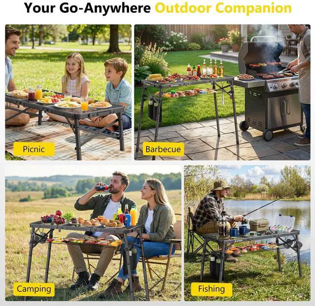 Get ready for your next outdoor adventure with this versatile foldable table. Designed for campers, BBQ lovers, and outdoor enthusiasts, it offers the perfect balance of stability, portability, and functionality. Whether you're grilling at the campsite, enjoying a family picnic, or setting up a quick meal by your RV, this portable grill table gives you a reliable surface wherever you go.