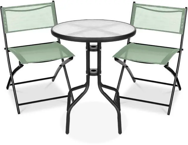 &lessthan;b&greaterthan;Specifications:&lessthan;/b&greaterthan; &lessthan;br&greaterthan;Table Dimensions: 23.75"(Dia) x 28.25"(H) &lessthan;br&greaterthan;Chair: 18"(L) x 17.75"(W) x 31.5"(H) &lessthan;br&greaterthan;Back: 17.75"(L) x 1"(W) x 14.5"(H) &lessthan;br&greaterthan;Seat: 16.25"(L) x 14"(W) x 0.25"(Thick) &lessthan;br&greaterthan;Floor-to-Seat: 19"(H) &lessthan;br&greaterthan;Chair Capacity: 265 lbs. (each) &lessthan;br&greaterthan;Table Capacity: 88 lbs. &lessthan;br&greaterthan;Weight: 26 lbs. (total) &lessthan;br&greaterthan;Material: Steel, Glass, Polyester Fabric &lessthan;br&greaterthan;Minimal assembly required (with instructions) &lessthan;br&greaterthan; &lessthan;br&greaterthan; &lessthan;b&greaterthan;Package Includes:&lessthan;/b&greaterthan; &lessthan;br&greaterthan;Table &lessthan;br&greaterthan;(2) Chairs &lessthan;br&greaterthan; &lessthan;br&greaterthan;For Residential Use Only&lessthan;p&greaterthan;BCP SKU: SKY8606&lessthan;/p&greaterthan;