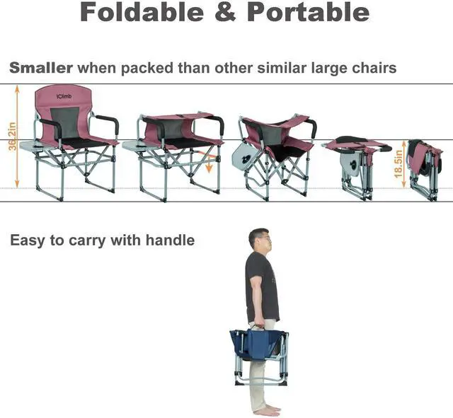 | Compact | Unlike other bulky folding chairs, this chair is much smaller when packed, like one suitcase, compact and space saving, perfect to fit into most cars, trunks |