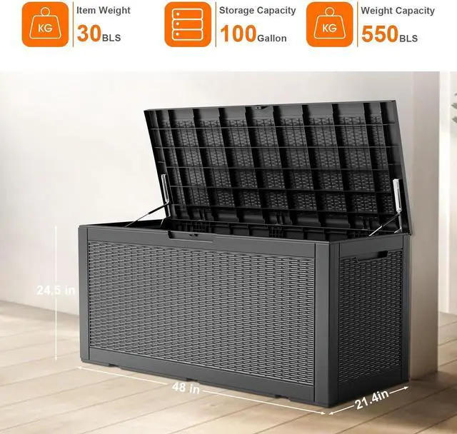Weatherproof material: This deck box is made of environmentally friendly polymer resin. It has better water and UV resistance than traditional wood. There is no need to worry about it fading and falling off in the coming years. Years of virtually no maintenance are required.