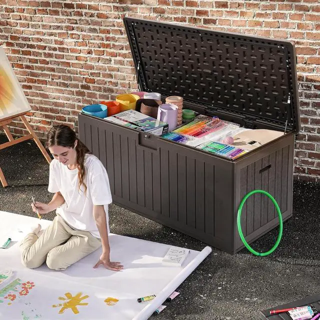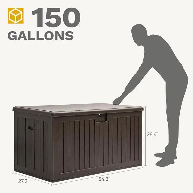 All Your Needs: With outer dimensions of 54.3 " L x 27.2 " W x 28.4 " H, this storage box offers a generous 150-gallon capacity, ideal for both indoor and outdoor use; The easy-lift system ensures effortless access to your stored items