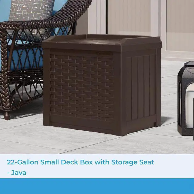 DECK STORAGE BOX: Beautiful plastic outdoor box has a 22-gallon capacity for patio, deck, yard, porch, garage, and shed storage!