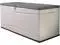 Extra-large deck box made from high-density polyethylene (HDPE) plastic, powder-coated steel hinges