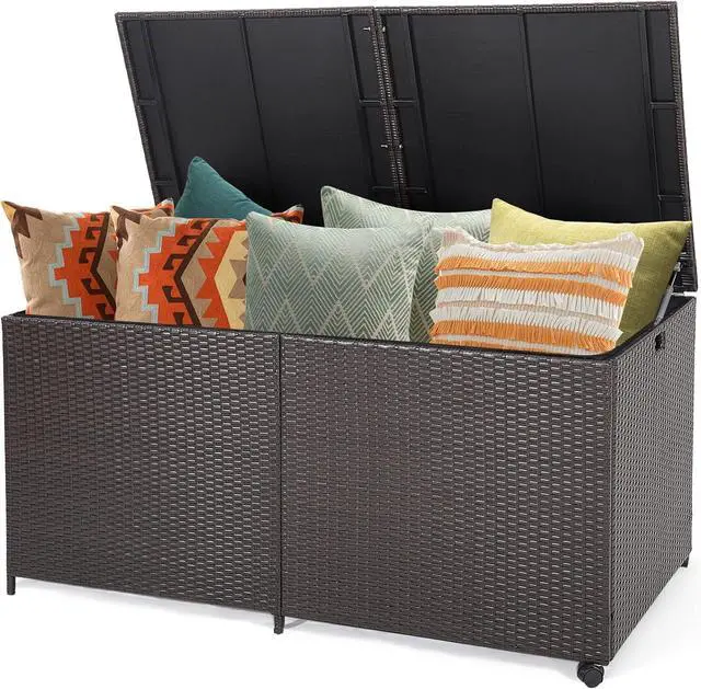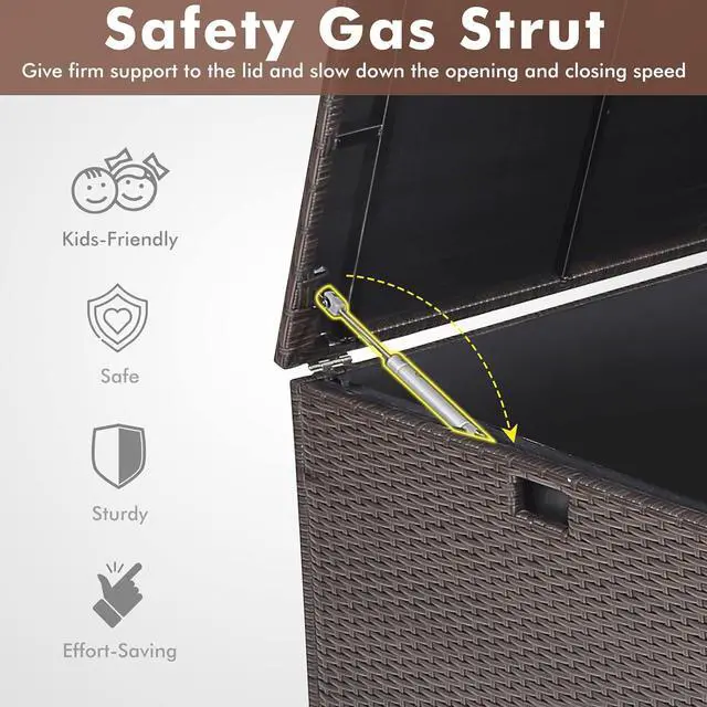 Safety Gas Strut & Middle Feet: The heavy-duty metal frame with PP board of the lid and the additional middle feet ensures high stability. And the safety gas strut saves much effort and slow down the opening and closing speed. Also, the hand-woven mix brown PE rattan ensures long-time outdoor use.