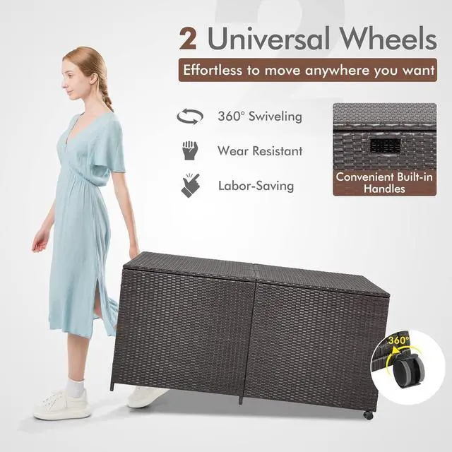 2 Universal Wheels: Equipped with 2 universal wheels, the storage bin can be moved smoothly and easily, which saves much of your effort. The functional storage and easy movement make the storage box a perfect addition to multiple places, such as poolside, front porch, backyard and so on.