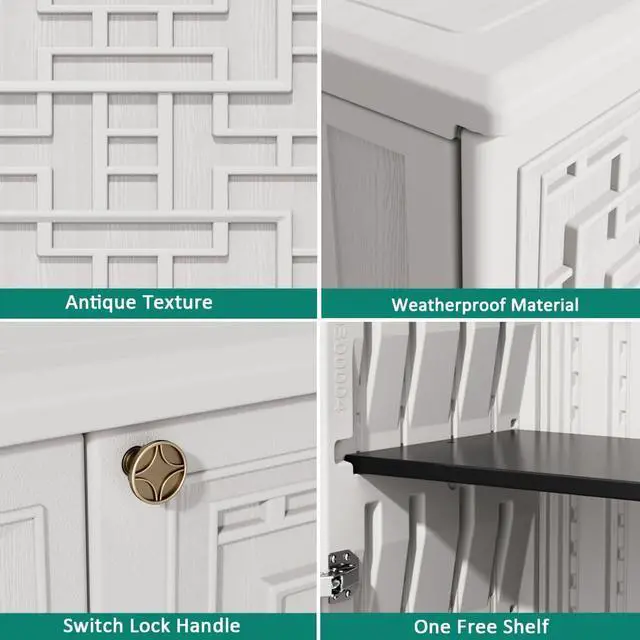 Household Daily StorageThis patio storage cabinet can widely used indoors and outdoors. providing a convenient way to store bedroom shoes, towels, personal collections, utility room items, and outdoor supplies(Garden, patio, pool) for any space in your homes.